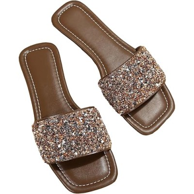 Women's Rhinestone Sandals Glitter Casual Sandal Flats Open Toe Sparkle Slides