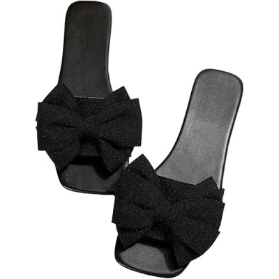 Women's Bow Sandals Square Open Toe Slip on Dressy Summer Sandals