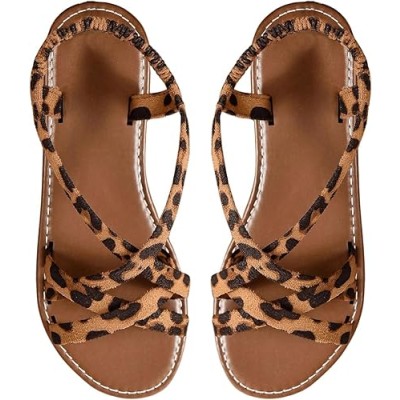 Women's Leopard Strappy Flat Sandals Cheetah Ankle Strap Open Toe Dressy Sandal 2025