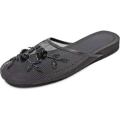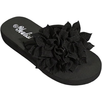 Women's Flower Appliques Flip Flops Boho Open Toe Slip On Flat Sandals Beach Vacation Slippers