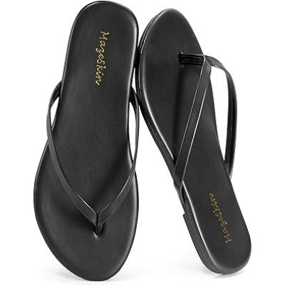 Women's Memory Foam Comfortable Flat Thong Sandals Dressy Summer Beach Leather Slide Sandals